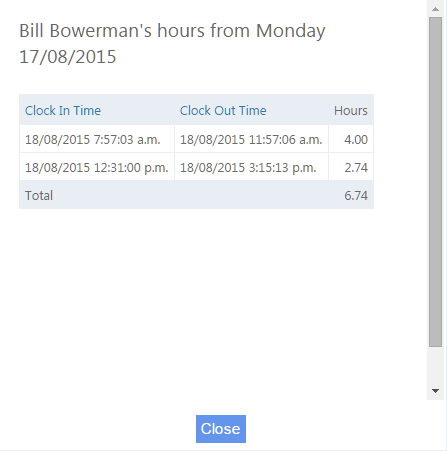 From the Factory version an Employee can see the number of hours worked this week by clicking on the My Hours button.