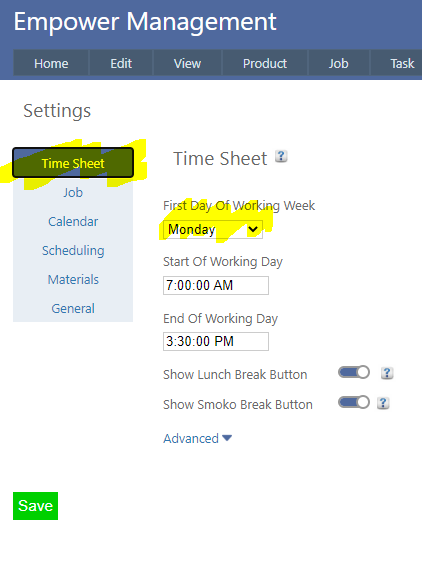 The day this is shown from (Monday the 17th in the above example) can be changed in Tools > Settings under the Time Sheet Tab - see highlighted below.