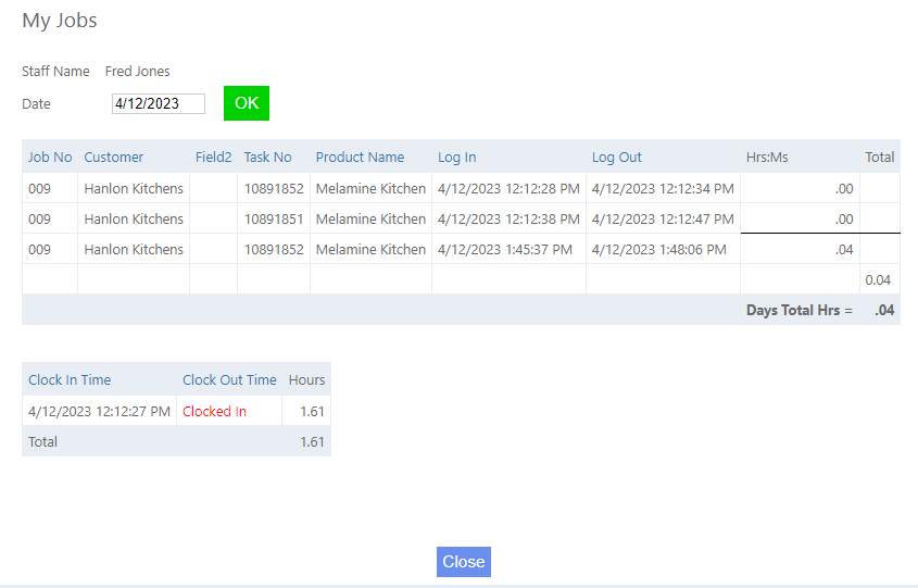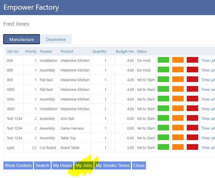 Once this has been done, in the Factory version, Employees can click on the My Jobs button (highlighted below).