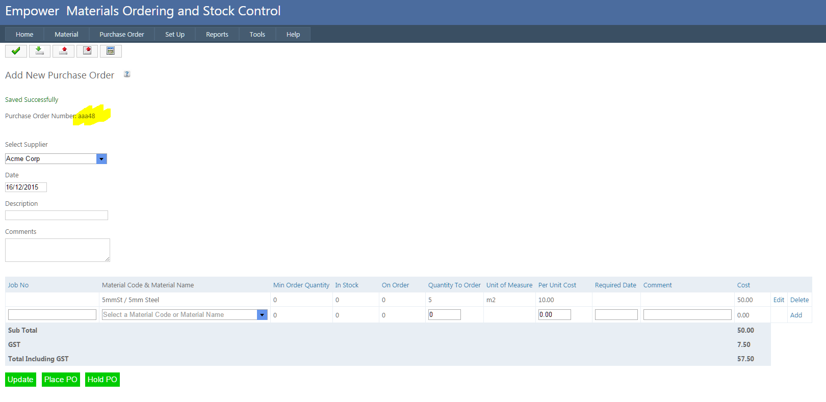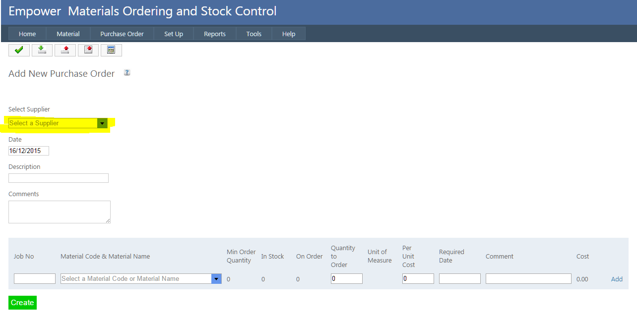 Home > Materials > Purchase Orders > New Purchase Order