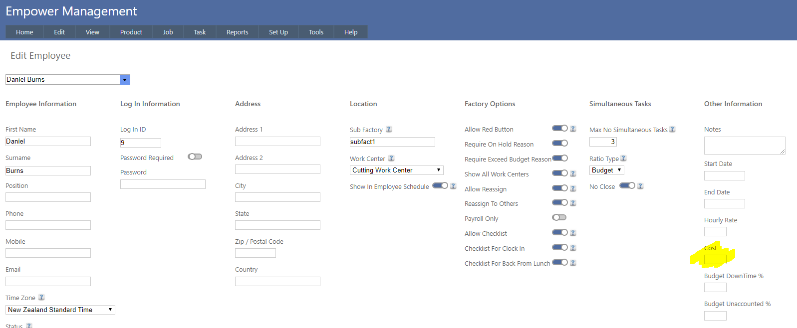 The Employee cost is visible in the Set Up > Employee page (see highlighted below)