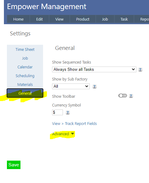 1. From the Main Management Menu, select Tools > Settings. Select the General tab on the left side and click on Advanced Settings - see below