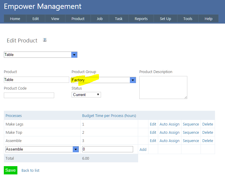 To add a Product to the Product Group, from the main menu go to Product > Edit.