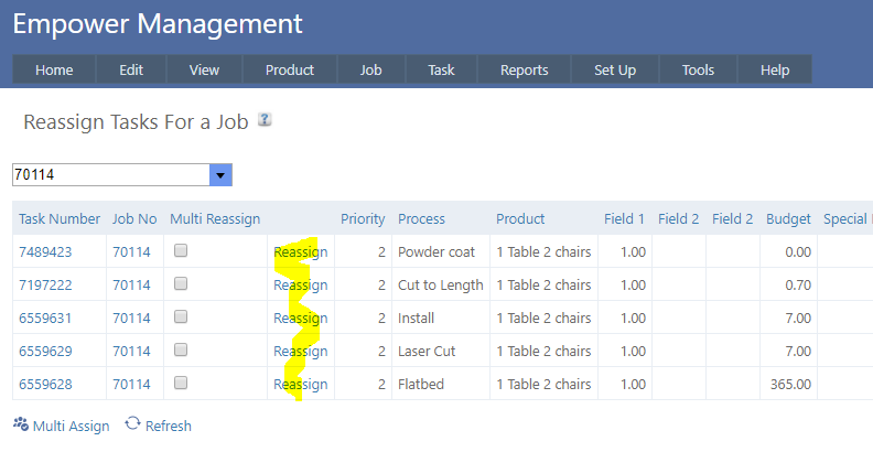 Home > Factory Productivity and Scheduling > Tasks > Assigning Tasks > Reassign Search