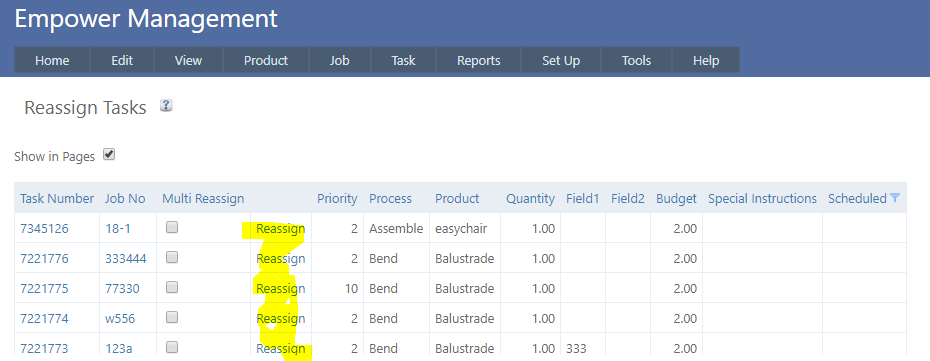 Home > Factory Productivity and Scheduling > Tasks > Assigning Tasks > Reassigning