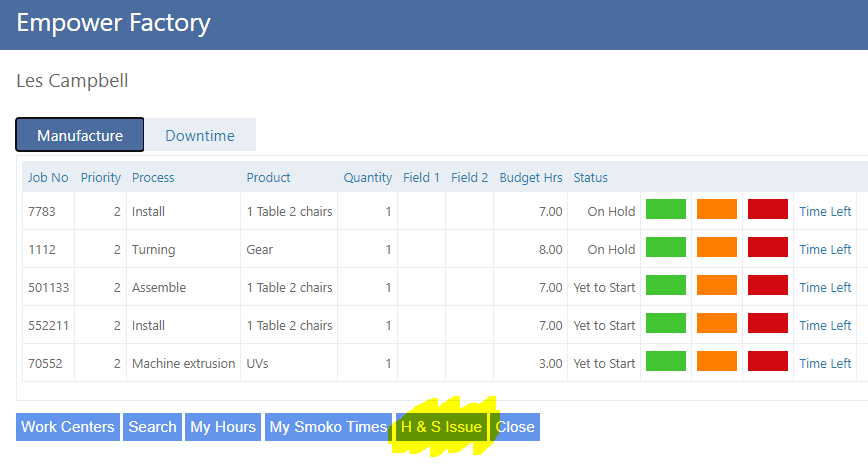 Home > Factory Productivity and Scheduling > Advanced Topics > Health And Safety Issues > Recording Health and Safety Issues