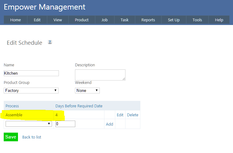 For example imagine you have a Schedule set up that requires Assembly Tasks to be started 5 days before the Required By Date - see below as an example