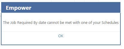 When entering Jobs with Required By Dates, Empower Scheduling can automatically check to see if your Schedule allows that date to be met.