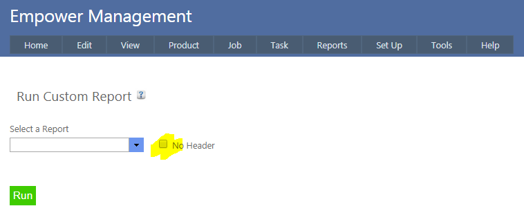 To run a previously created Custom Report, from the Main Management Menu go to Reports > Report Writer > Run Custom Report.
