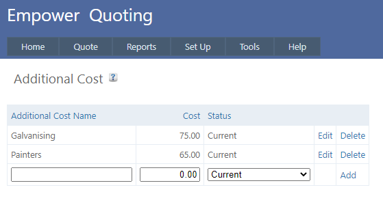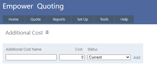 Home > Quoting > Getting Started > Set Up > Set Up Additional Costs