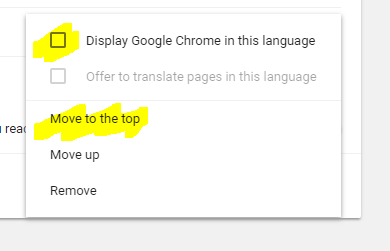 7. And finally click on the check box next to Display Google Chrome in this language (see below) and then on Move to the top