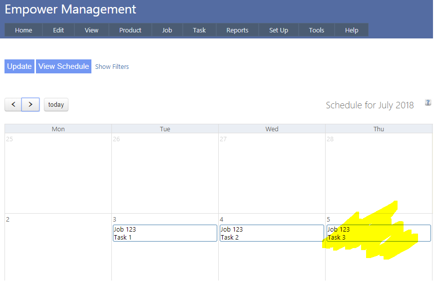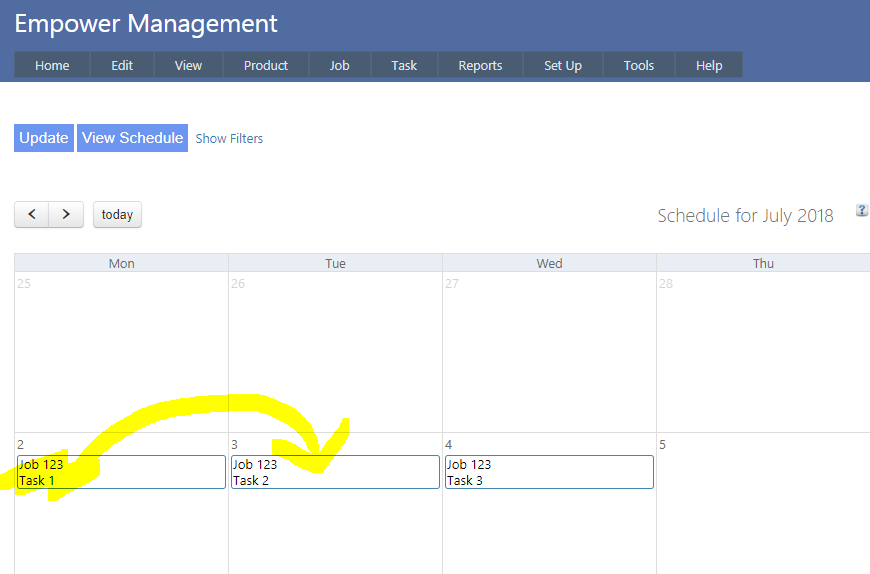 hen dragging say the Monday Task to Tuesday and also the Job Required by Date will also be altered.