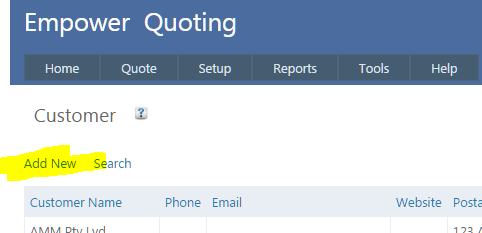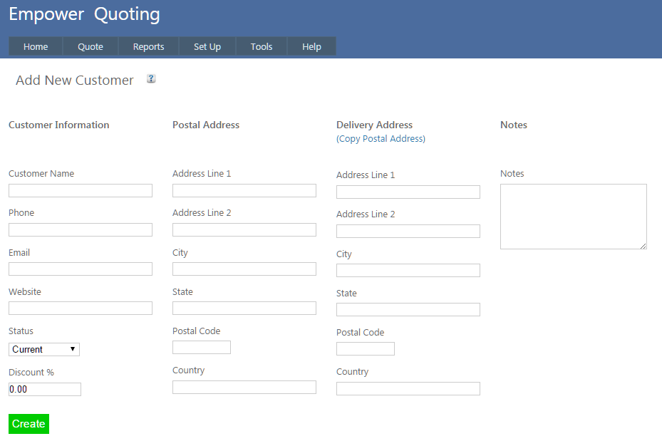 Home > Quoting > Getting Started > Set Up > Set Up Customers