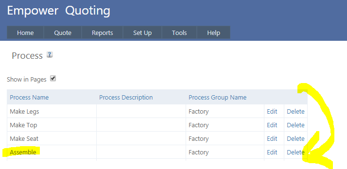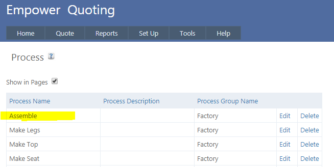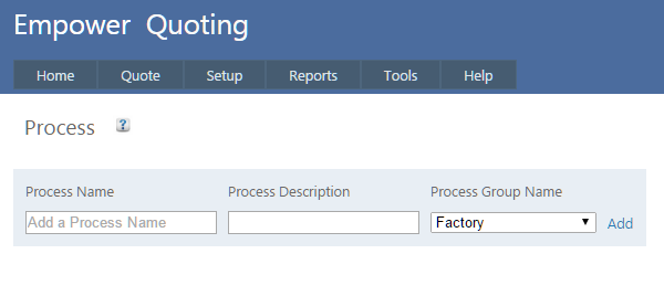 To set up Processes in Empower Quoting, from the main menu, go to Set Up > Process.