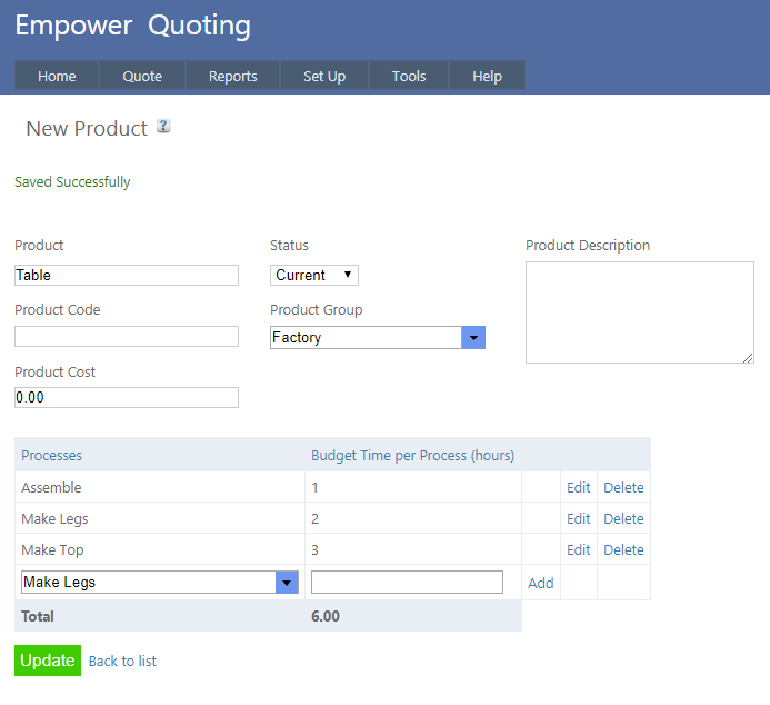 A Product can have a default cost. This cost will be the default amount in a Quote (although that cost can be edited - see New Quote and Edit A Quote).