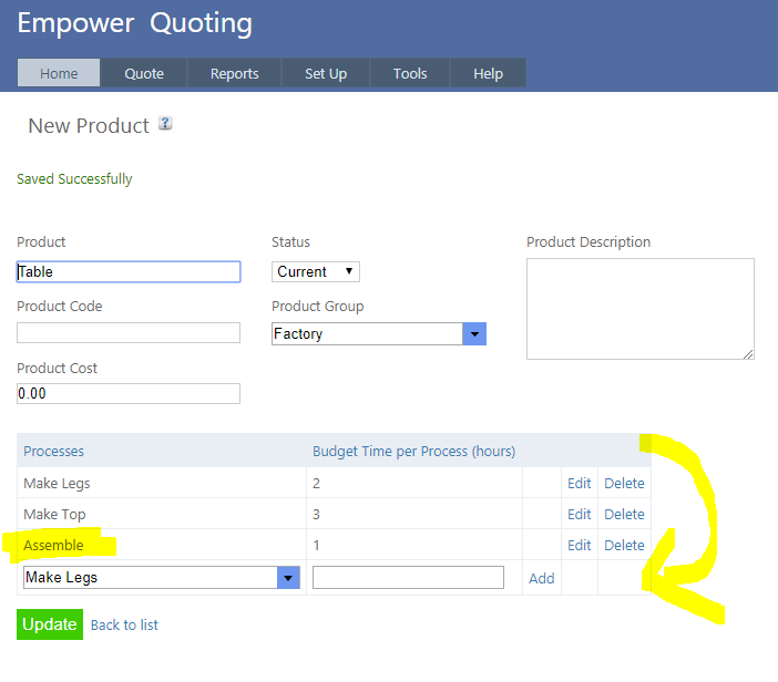 Then click on the arrow to the right of the box under Processes and select each Process you require and the Budget Time if you know it - then click Add.