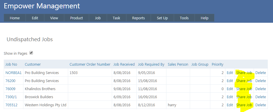 1. From the Main Menu go to Job > Undispatched and click on Share Job, for the Job you want to share