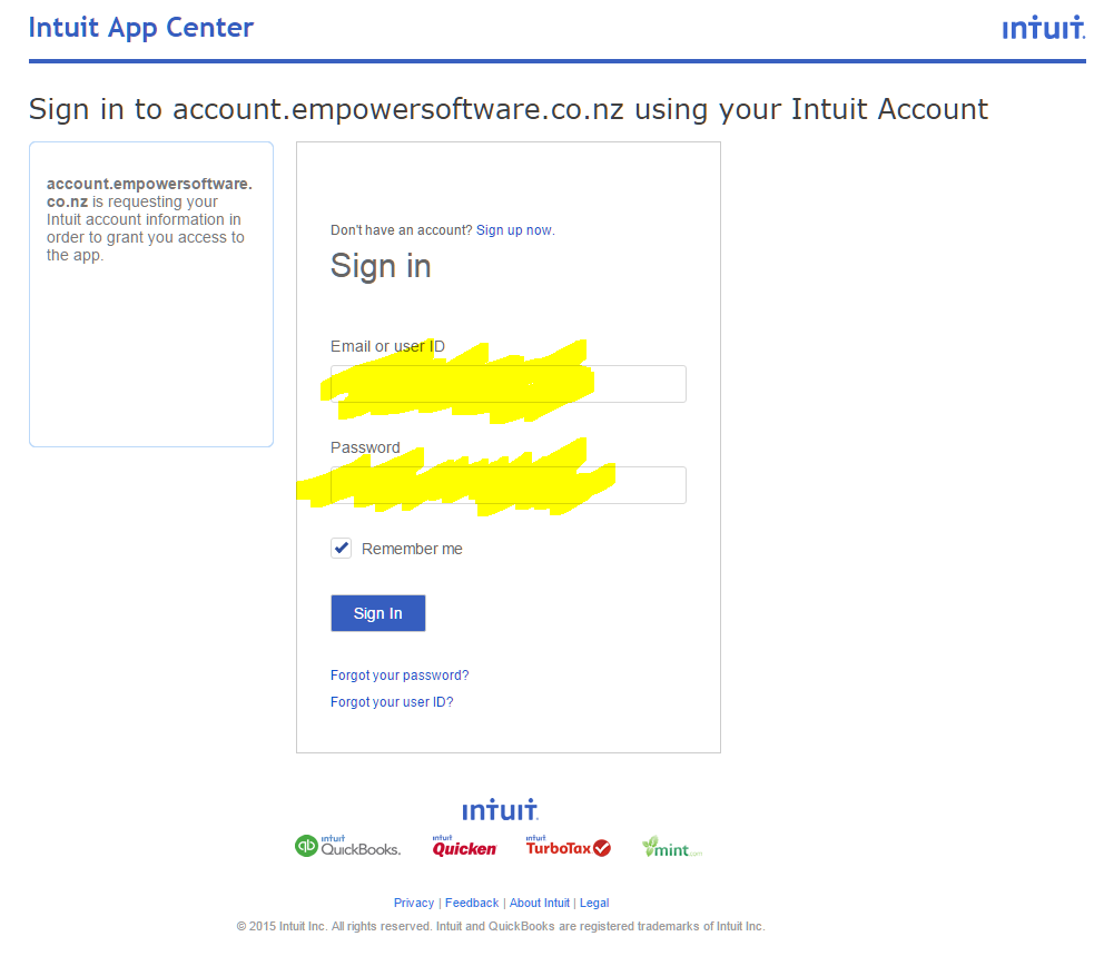 To use this you need to have registered an Email or user ID and Password with Intuit - i.e. be an existing Intuit user.
