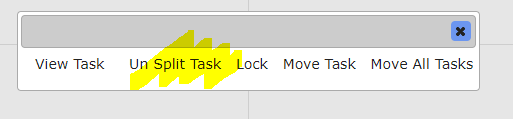 Click on the Un Split Task button (highlighted above) to Un Split (or join up) the Split Tasks back into one Task.