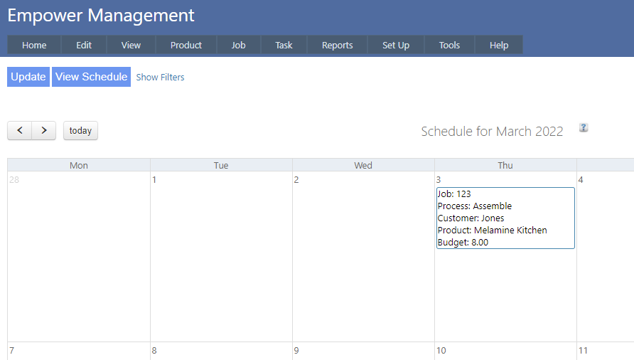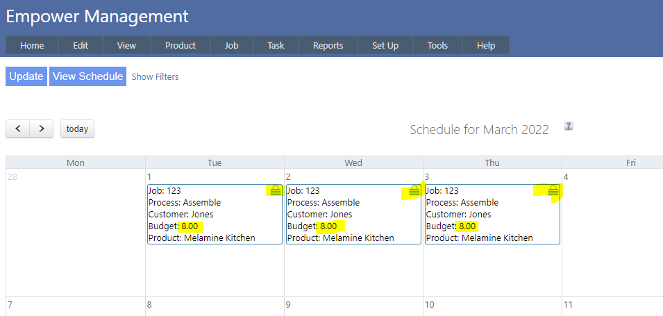 For example imagine Job Number 123 with a Required By date of Friday, and that you have the setting in Setting Schedule Dates set as Finish.