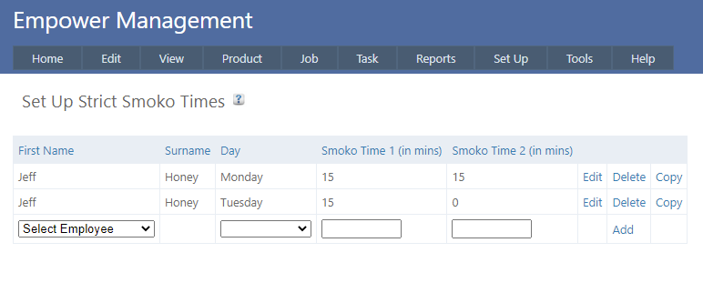 How this works is that each Employee is given a time in minutes for a smoko break.