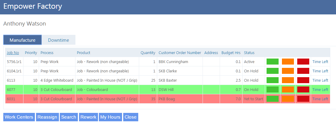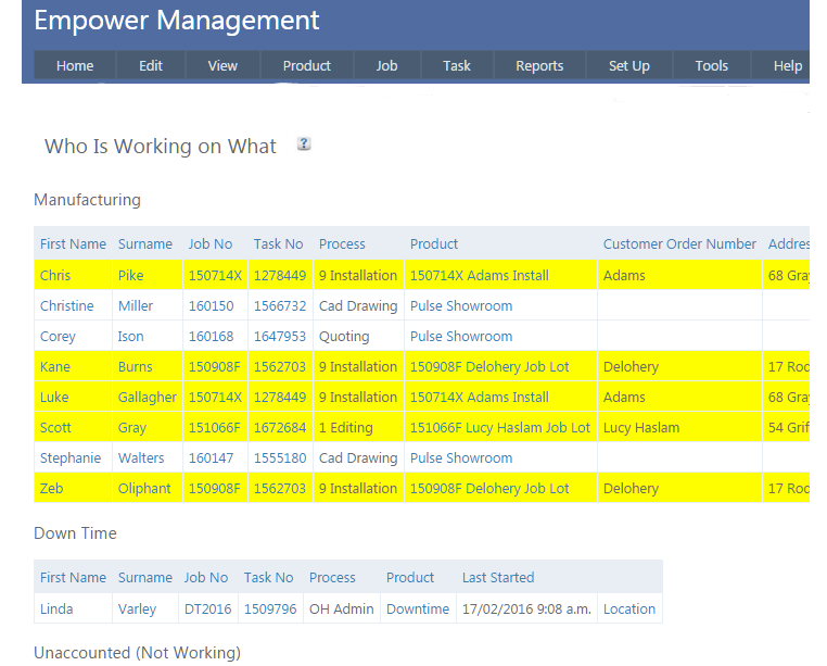 3. The Manufacturing part of the Who is Working On What page