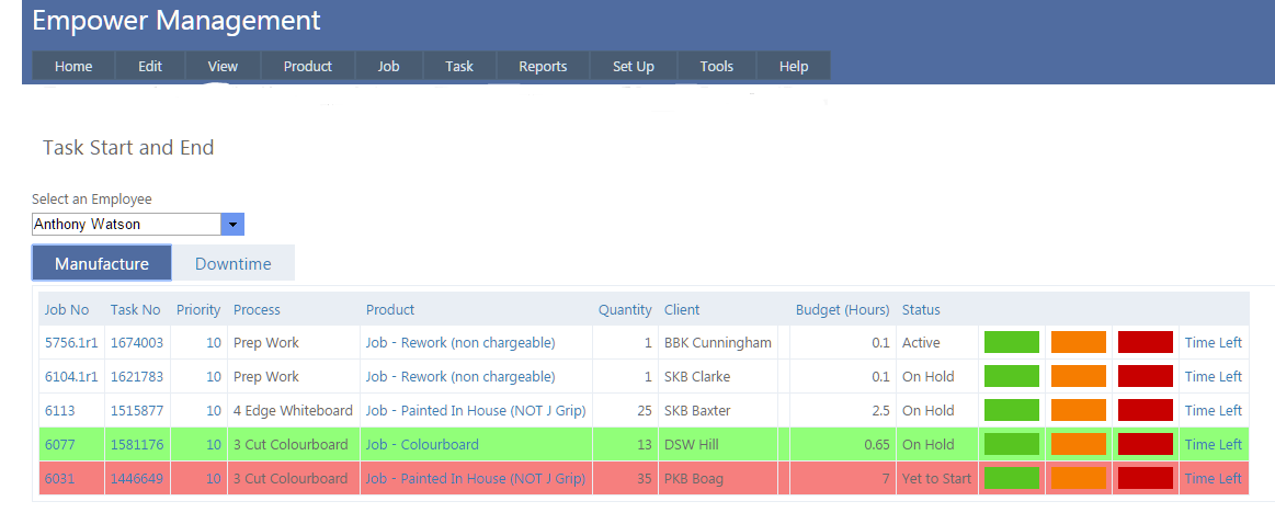 1. Task Highlighting when seen from the Task > Start And End page in the Management version.