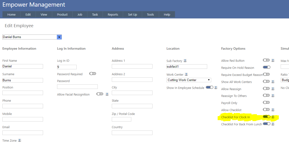 2. Secondly, set up each Employee to use the Clock In Checklist.