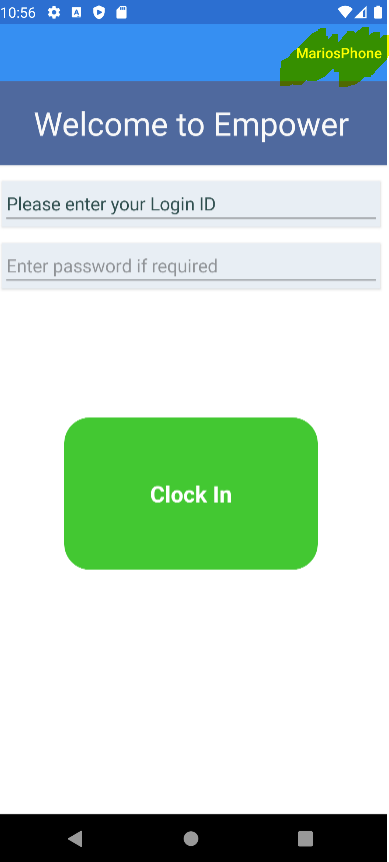 To Clock In, enter your Employee Login ID and password if required and tap the Clock In button.