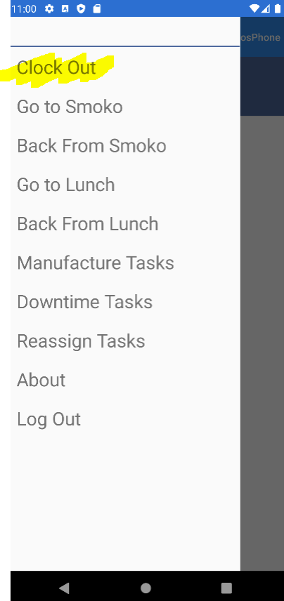 To Clock Out, tap on the three horizontal bars at the top left of the screen (see highlighted above).