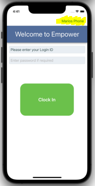 To Clock In enter your Employee Login ID and password if required and tap the Clock In button.