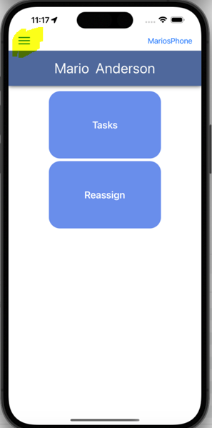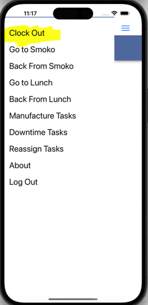 To Clock Out, tap on the three horizontal bars at the top left of the screen (see highlighted above).