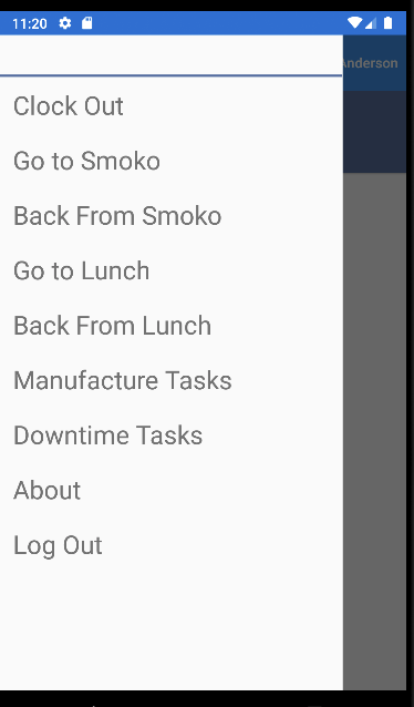 Home > Factory Productivity and Scheduling > Advanced Topics > Phone App > Android App > Using the Android App > To Go To and From Lunch