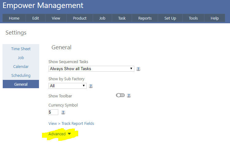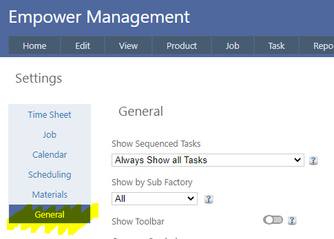 From the Main Management Menu select Tools > Settings and select the General Tab (see highlighted below)