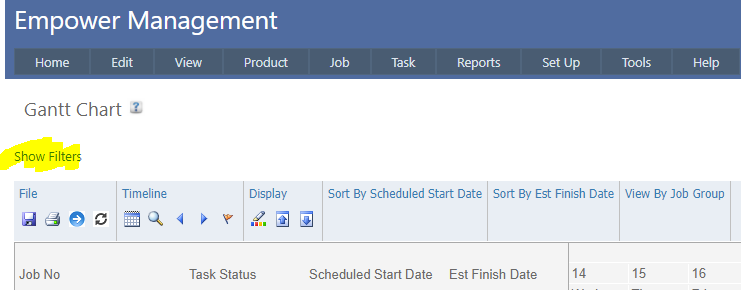 Clicking on Show Filters in the Gantt chart (see highlighted below)