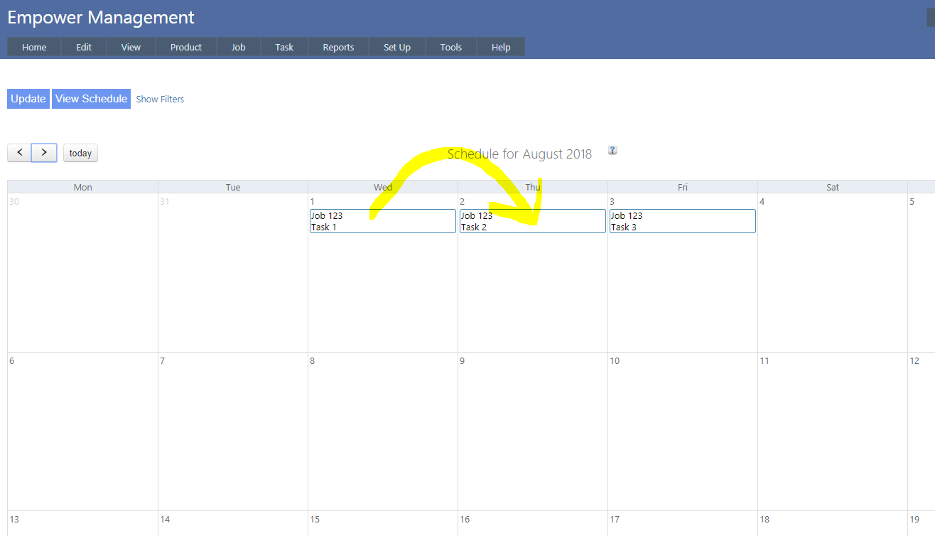 For example if weekends are set to Saturday and Sunday and Task 1 is dragged from Wednesday to Thursday (see highlighted below).