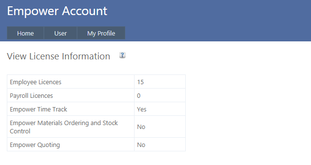 To view the Licence information for your company - i.e. the number of Licences and the various modules you have, go to the Home page in the Account module.