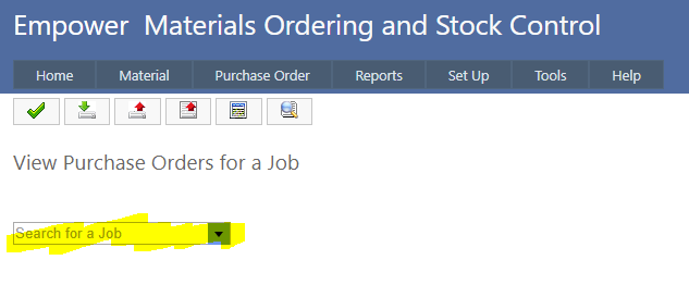 To do this, from the the Main Menu go to Purchase Order > View > View for Selected Job.