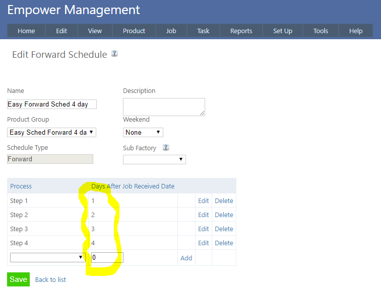 In this instance we will select the Schedule Easy SchedForw 4 Day as per point 2 above.