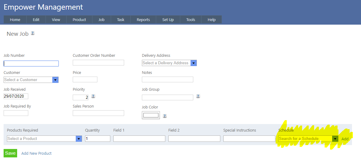 You should see a page similar to below - note the new field available to select the Schedule (see highlighted below).