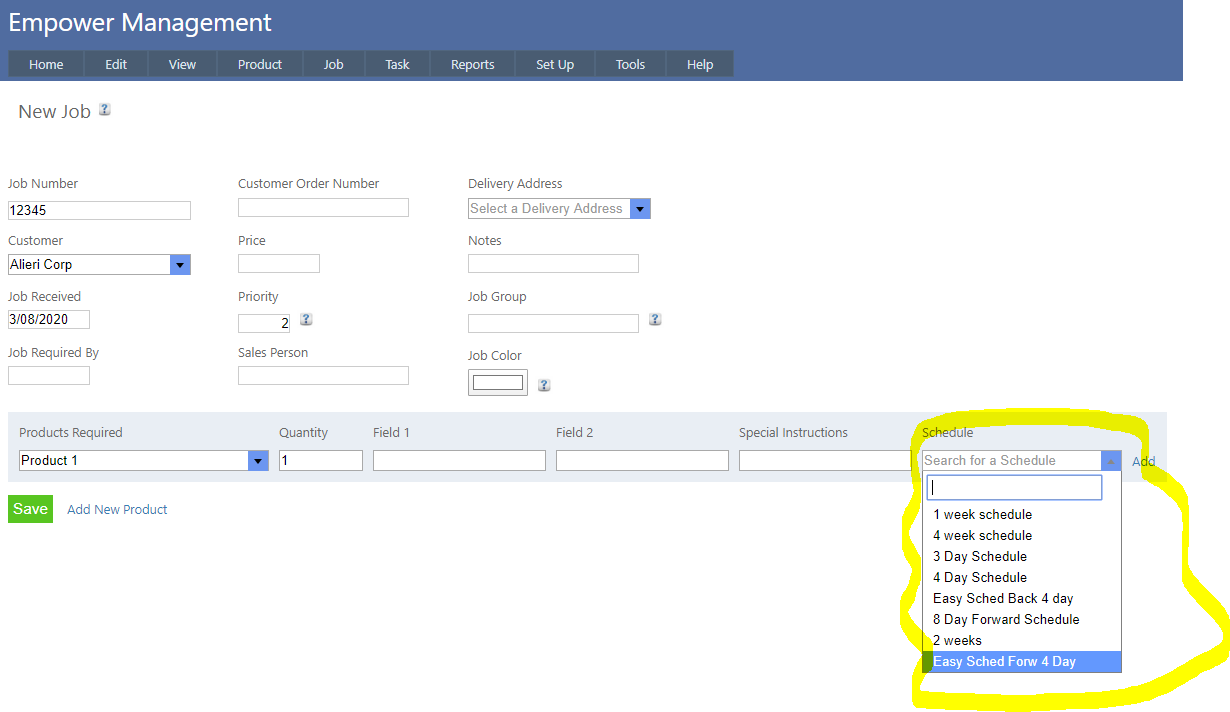 2.It is even possible to have 2 Products in the same Job and have one set as a Forward Schedule and one as a Backward Schedule