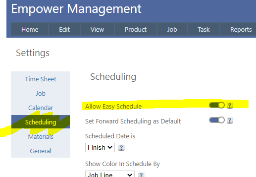 4. Selected Easy Schedules can be edited in the Job > Edit page