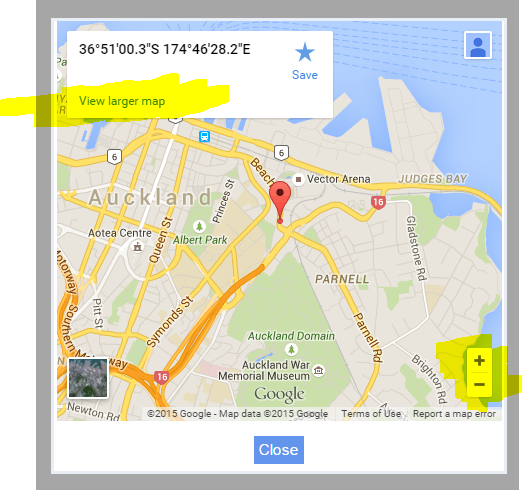 - zoomed in and out by clicking on the + and - symbols or moving the slider bar towards the + or - symbols