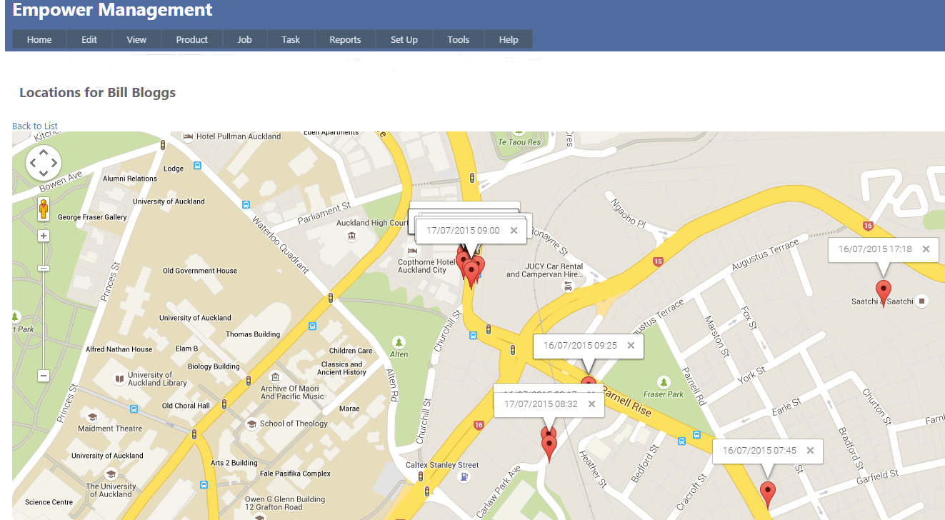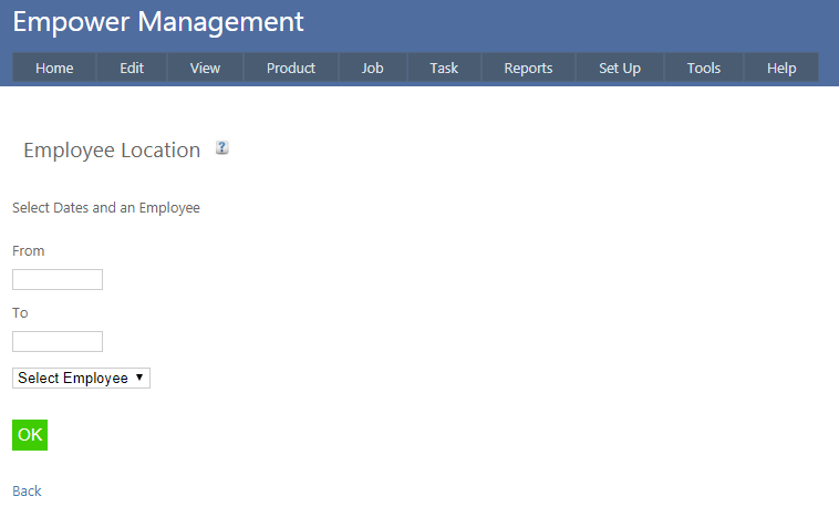 Select an Employee and a From and To date. Empower stores the last two weeks of Location Data. Data before that will be periodically deleted.