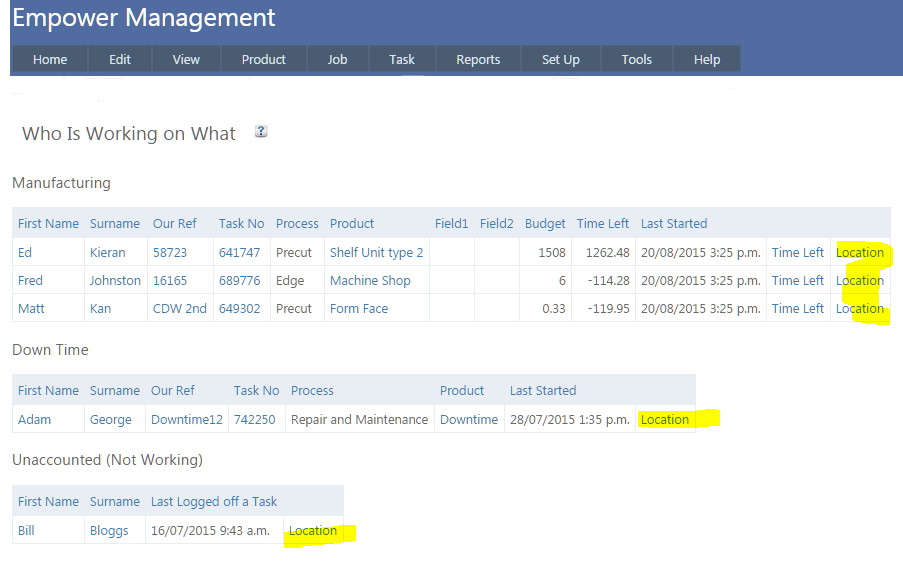 This works in a aimilar way to number 1 above except that all Employees who have used the Login User Name to record their Location will be visible.