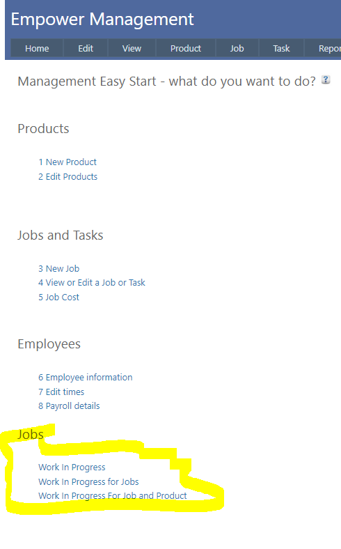 6. After saving your work - go to the Management Easy Start page (you may need to refresh it in your browser to find the three additional pages (see highlighted below)